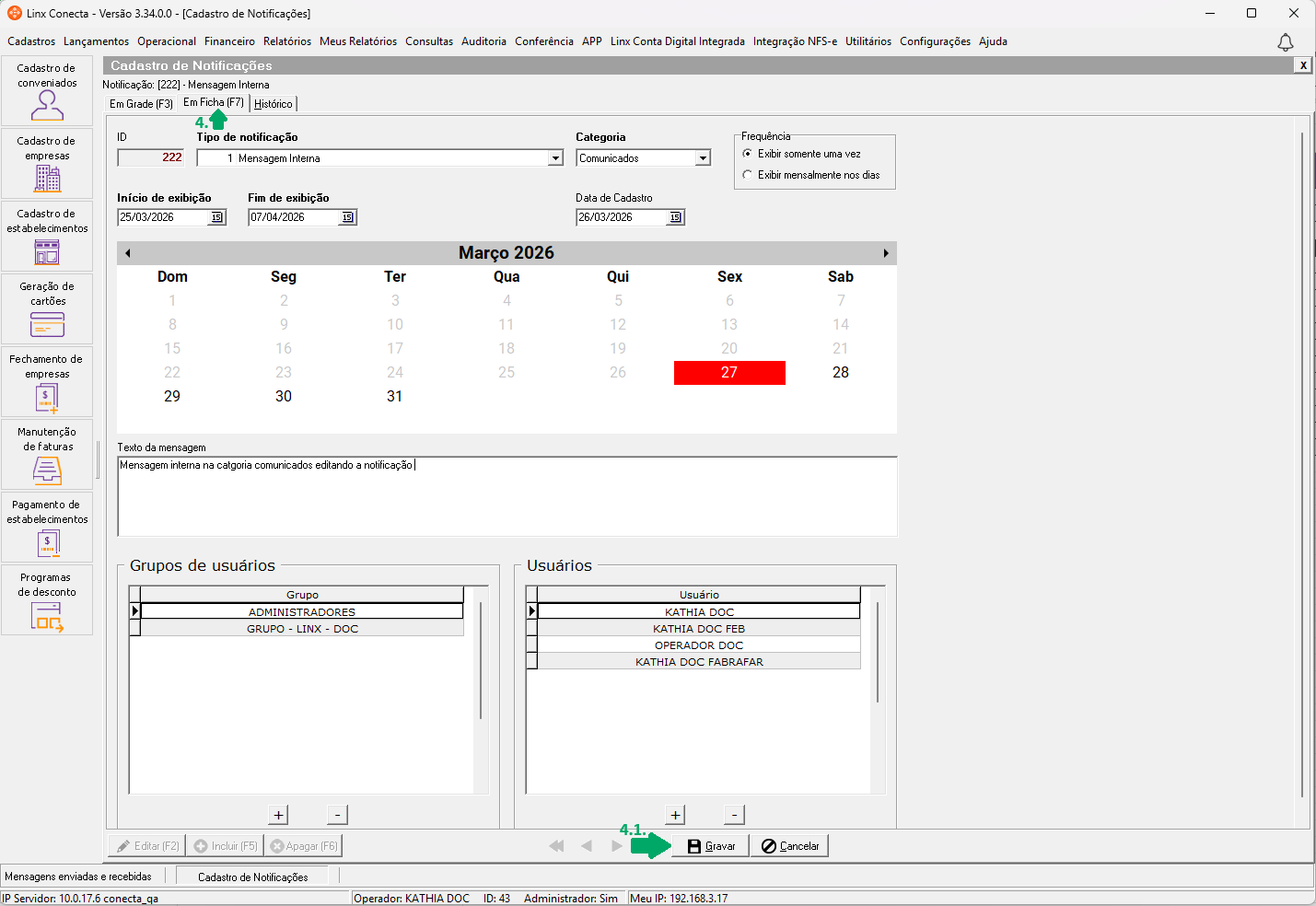 4.1. Caso deseje editar a notificação, faça as alterações e clique em 'Gravar' para salvá-las;
