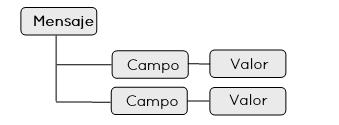 Longitud del mensaje (4 bytes) | Indica si el mensaje requiere respuesta o no (2 bytes) | Campos de la operación con sus valores {campo1:valor1;campo2:valor2;…;campo3:valor3} |