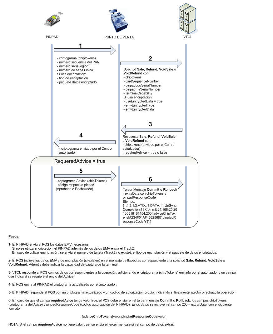 - Operación e-commerce con billetera: El POS tendrá que enviarle a VTOL dos mensajes:
