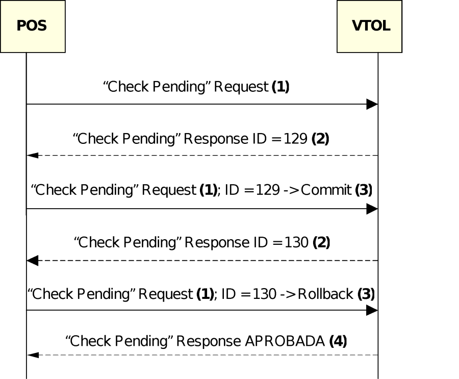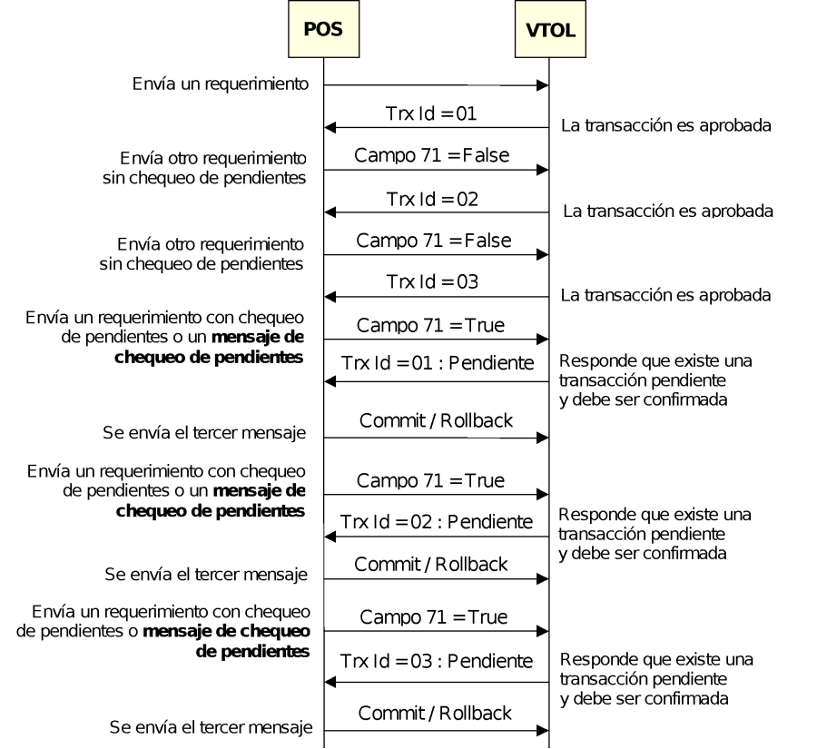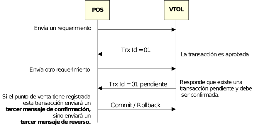 VTOL es un intermediario entre el POS y el Centro Autorizador. Cuando VTOL responde al POS un requerimiento a partir de la información recibida desde el Centro Autorizador, el mismo desconoce la interacción que se está teniendo entre el cliente y el operador y los problemas técnicos que pueda tener el POS (impresora, enlaces, etc). Es necesario cargar al POS con la responsabilidad de confirmar a VTOL cómo terminó la transacción, pudiéndose confirmar o reversar. Para ello existe el Tercer Mensaje del POS a VTOL.