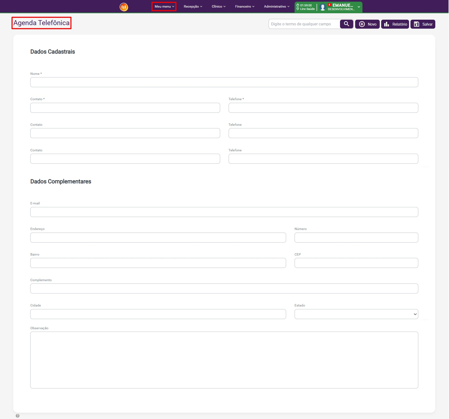 2- Como cadastrar um contato na agenda telefônica através do ClinicWeb?
