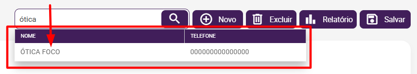5) Para abrir o cadastro, é só clicar sobre o nome listado.