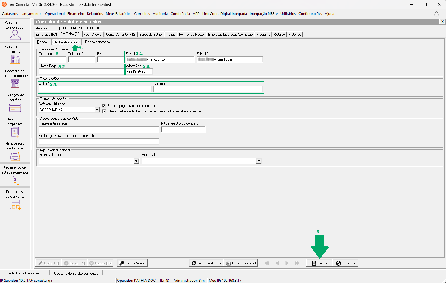 Como cadastrar os dados adicionais de telefones/internet e observações do estabelecimento, no módulo Conecta?