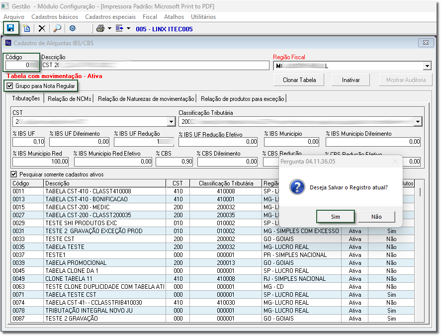 7. Será apresentada a mensagem 'Deseja Salvar o Registro atual?', clique em 'Sim' para confirmar;