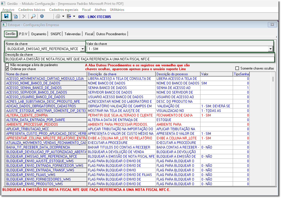 3.1. 'Nome da chave' selecione o parâmetro 'BLOQUEAR_EMISSAO_NFE_REFERENCIA_NFCE';