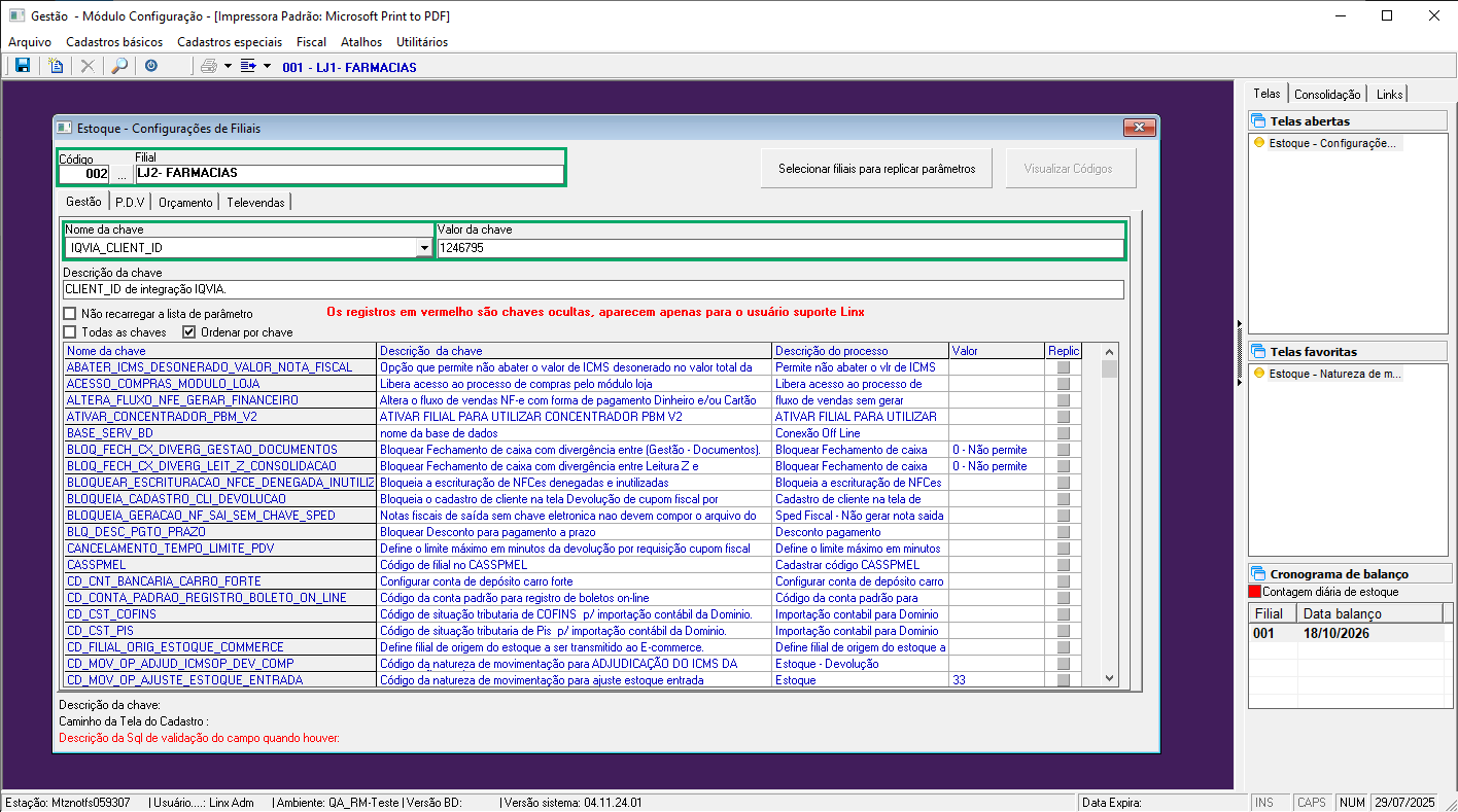Módulo Configuração - Como realizar a configuração do cliente ID para integração IQVIA