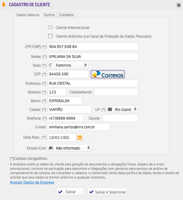 Data de Criação