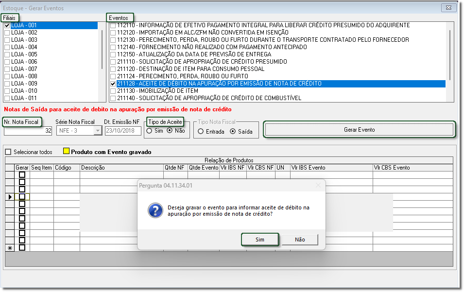Linx Itec - Gerar evento 211128 - Como gerar o evento 211128 - Aceite de débito na apuração por emissão de nota de crédito