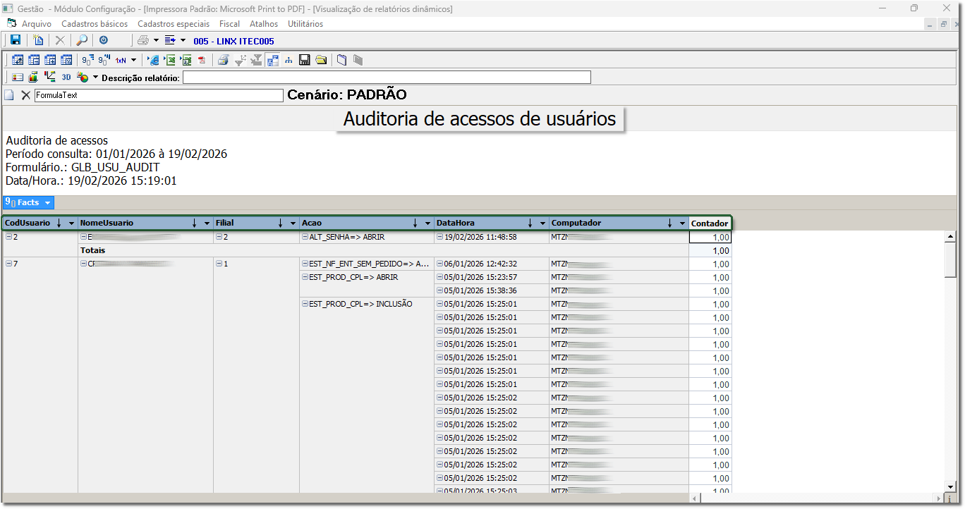 | Arquivo PNG Auditoria de log - Usuário.png | 103 kB | Josiane Cristina Henrique Dos Santos | fev 19, 2026 15:30 |