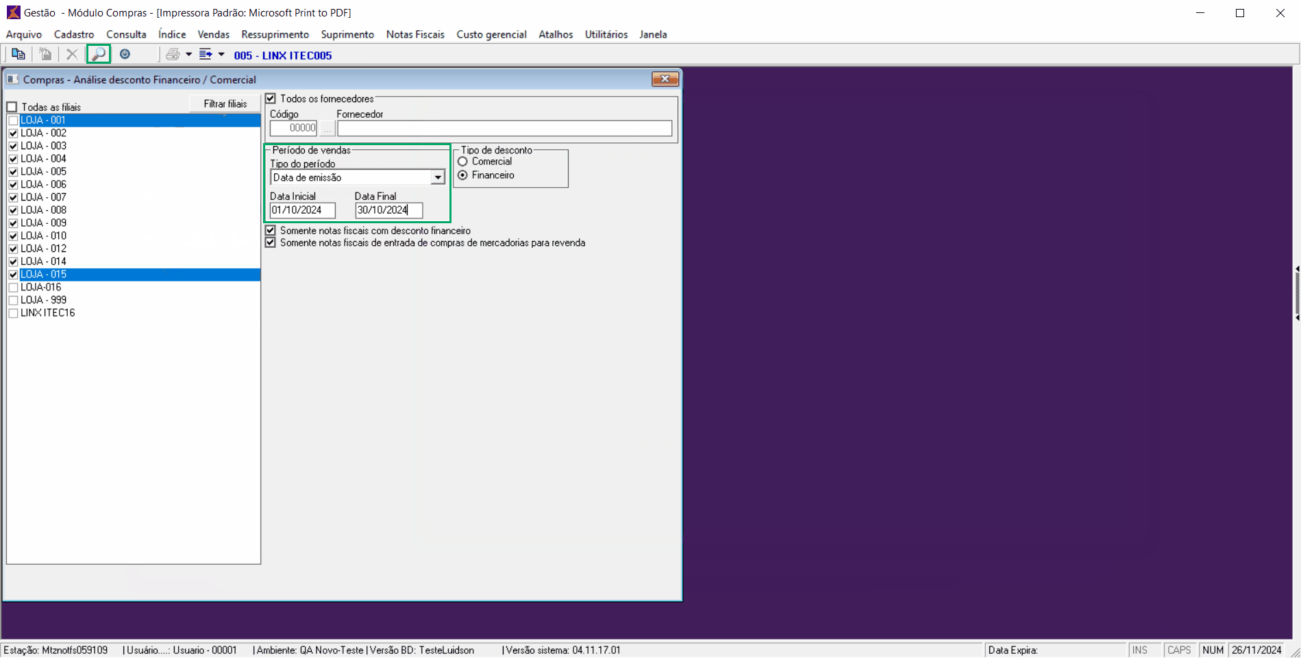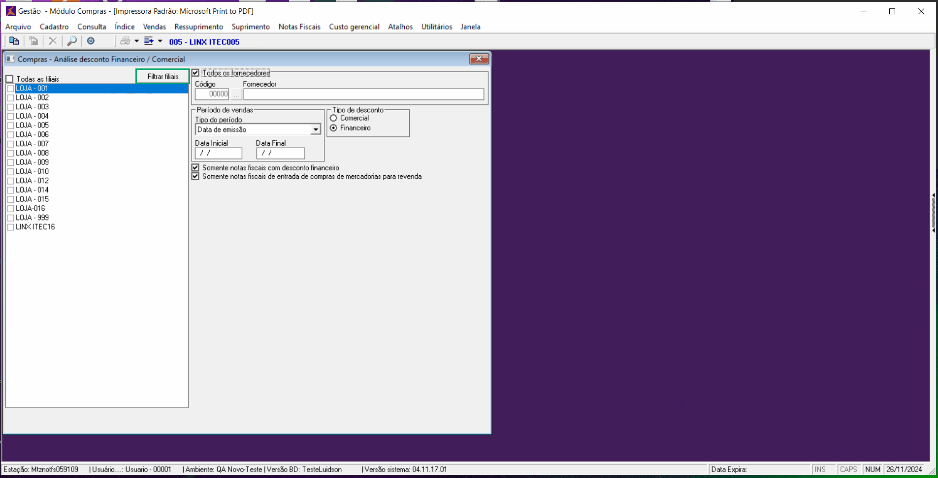 Módulo Compras - Como utilizar filtro personalizado para visualizar o Desconto financeiro/comercial