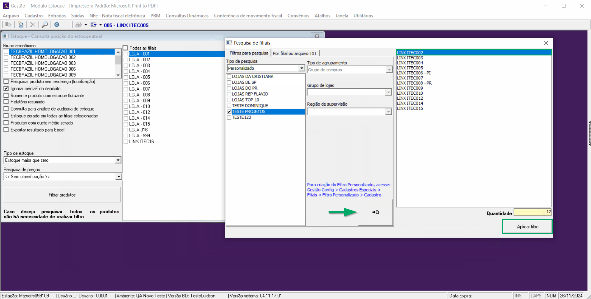 Módulo Estoque - Como utilizar o filtro personalizado na consulta de posição do estoque atual