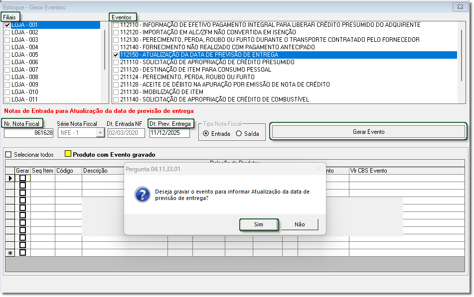 Linx Itec - Gerar evento 112150 - Como gerar o evento 112150 - Atualização da data de previsão de entrega