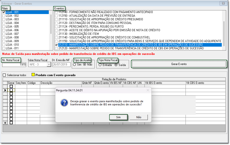 Linx Itec - Gerar evento 212110 - Como gerar o evento 212110 - Manifestação sobre pedido de transferência de crédito de IBS em operações de sucessão