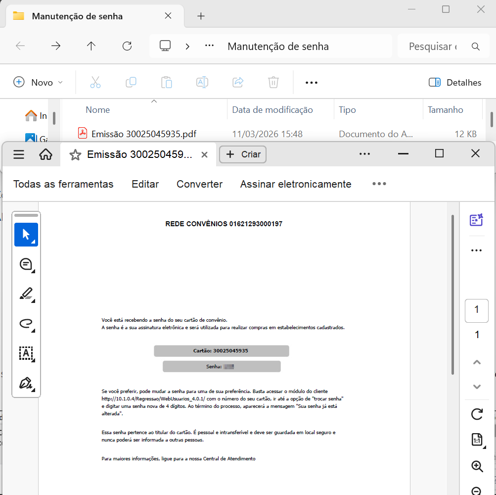 Para solicitar a senha do cartão do conveniado, realize os passos abaixo:
