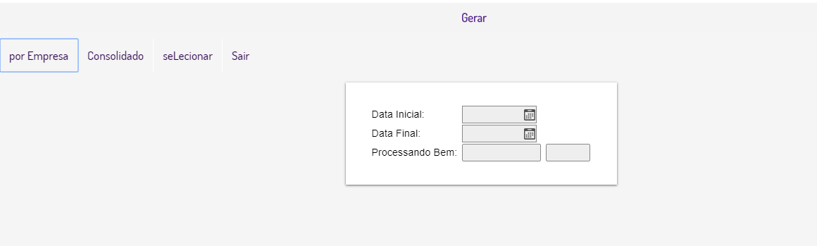 Opções do programa Deve ser informado o Intervalo de Datas: Data Inicial e Data Final.