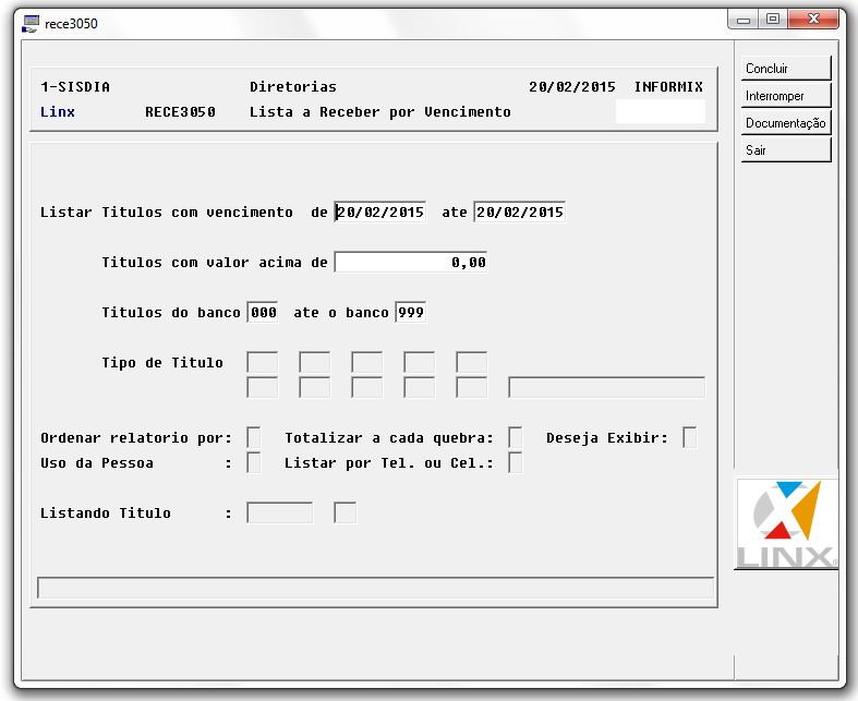 - Existe a opção de selecionar mais de um "Tipo de Título" crforpgt, ou informar <ENTER> para selecionar todos os Tipos.