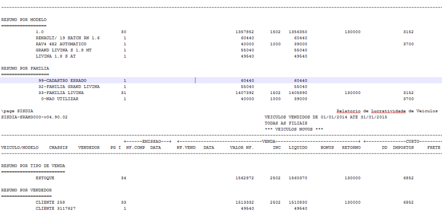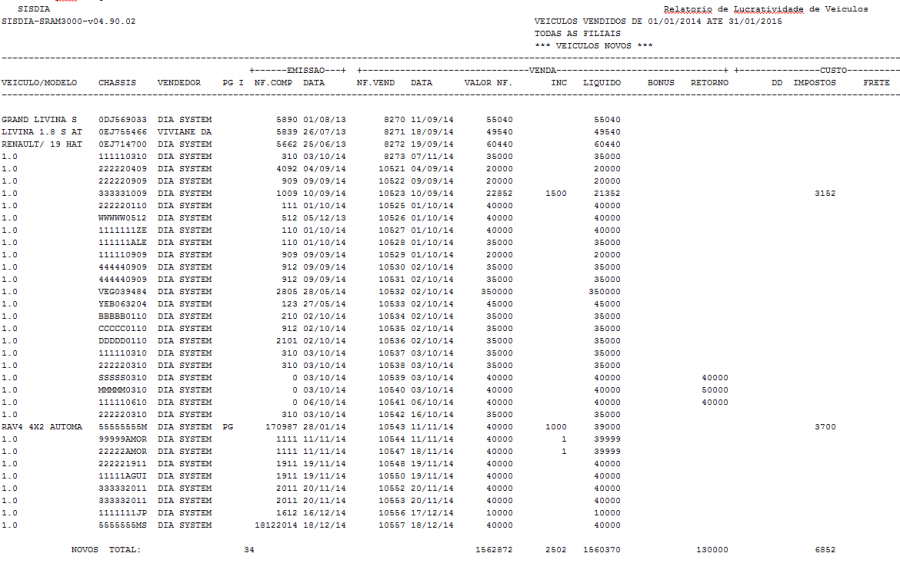 - Foi incluído no relatório, na parte relacionada à VENDA, para ajudar na análise da lucratividade dos veículos vendidos, uma nova coluna intitulada LÍQUIDO, que indica a diferença entre a coluna VALOR NF e a coluna INC. Ou seja: