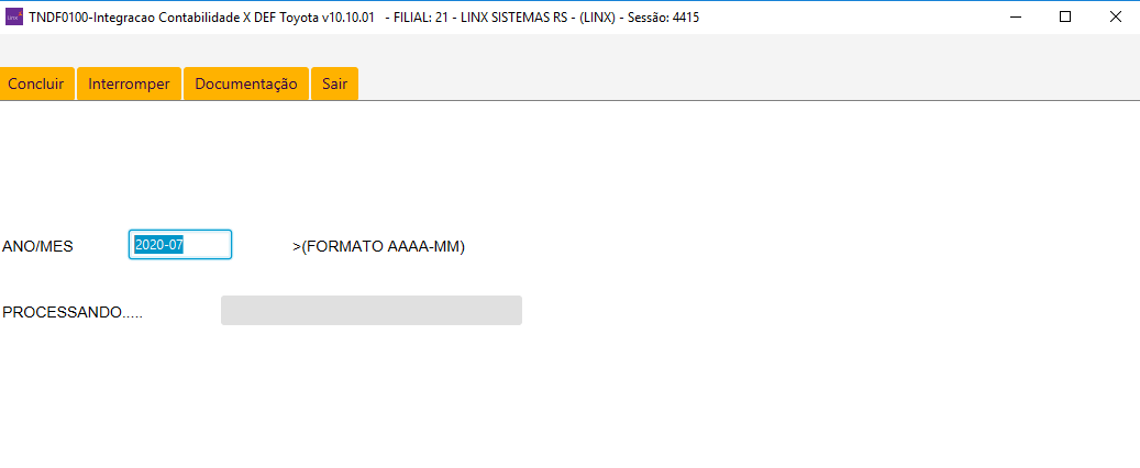 - Ano / Mês: Informe o ano / mês para a geração do movimento do DEF.