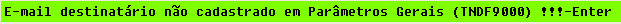 Sem seguida apresentará a mensagem de advertência informado o motivo do não envio do email: