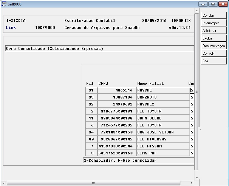 Na opção SnapOn x DEF será chamado programa TNDF0260, onde será possível o relacionamento das colunas do DEF com o código do SnapOn. Verificar documentação deste programa. |