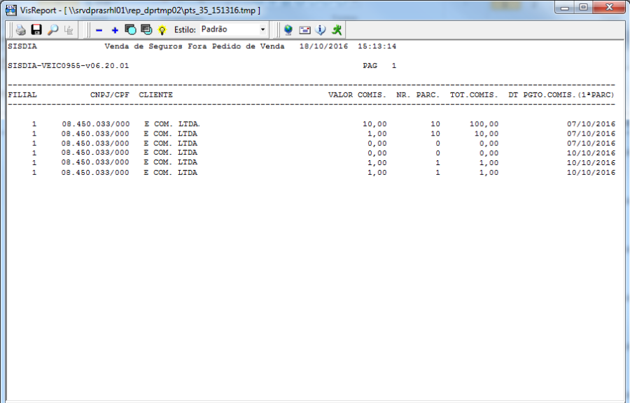 - Valor da Comissão: Valor da comissão do vendedor do seguro;