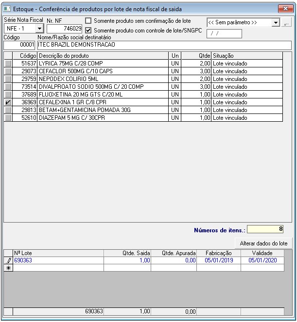 Como realizar a conferência de produtos por lote de nota fiscal de saída?