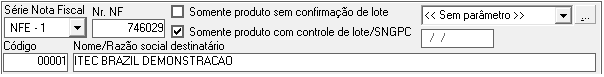Pré Requisitos: Cadastro de nota de saída, cadastro de produto com controle de lote.