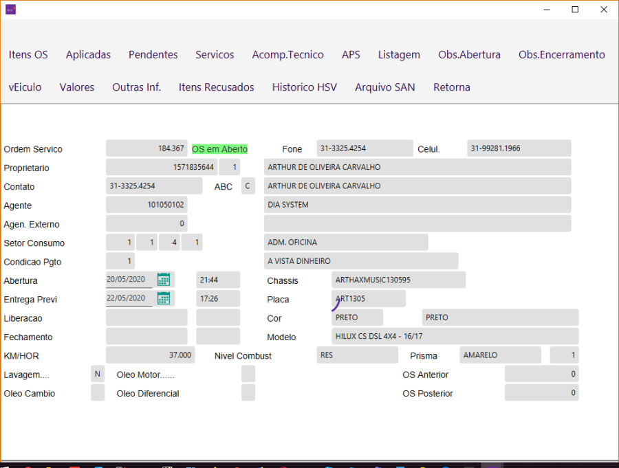 Essa mesma informação se mantém, mesmo quando a pré-ordem virar uma Ordem de Serviço: