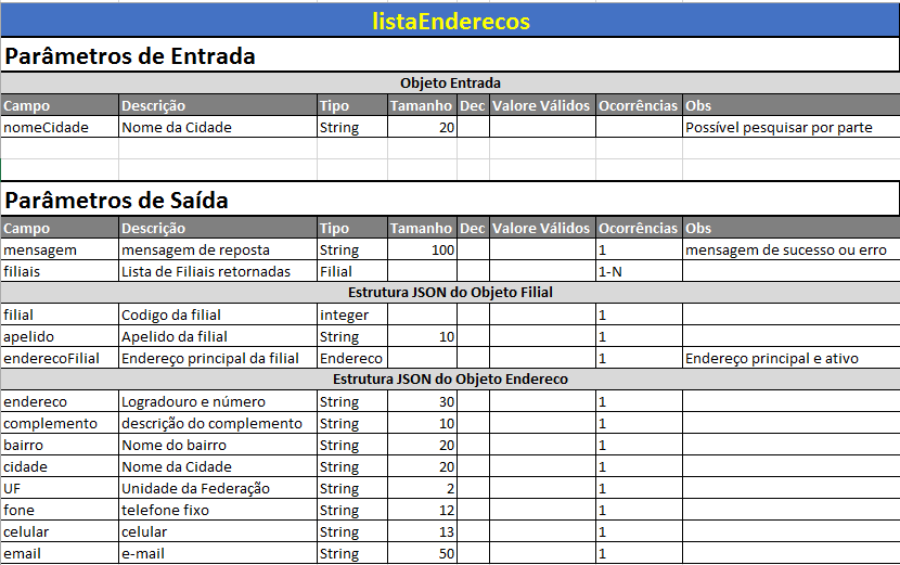 Nesta API de Agendamentos, estes métodos deverão ser consumidos automaticamente pelo FlyChats, de acordo com a seguinte dinâmica: a) ListaEndereços: o FlyChats passa a cidade do cliente e a API retorna a lista de filiais mais próximas do cliente, com seus respectivos endereços, para que o cliente selecione a filial a ser feito a agendamento.