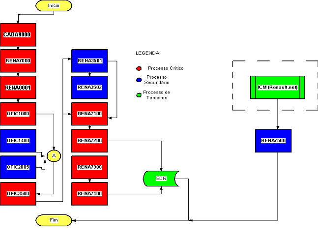 Legenda: EDR – Conjunto de arquivos contendo dados das intervenções realizadas e peças substituídas ICM – Sistema de Comunicação entre "dealer" e fabricante em substituição ao GCM OTS – Operação Técnica Especial. Intervenção indicada pela Renault com base em ocorrências.