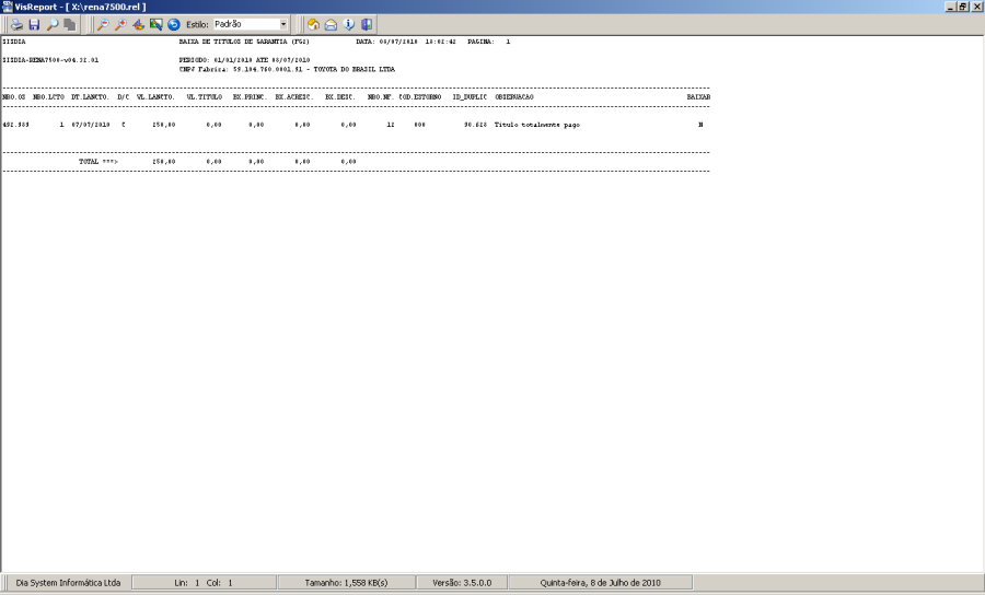 RENA7500 – BAIXA CONTAS A RECEBER GARANTIA RENAULT