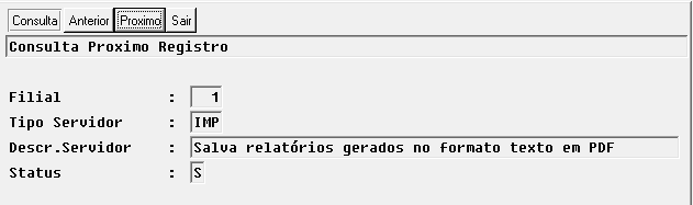 Passo a Passo Service Desk e Field Service Novo Processo de Impressão O objetivo deste documento é descrever os procedimentos para utilização do novo processo de impressão disponível no SISDIA. Este novo processo permite imprimir os relatórios do sistema em qualquer impressora, visualizar os relatórios e ainda gerar PDF destes relatórios. Para disponibilizar este novo processo para uso no SISDIA, basta acessar o programa CADA9000 e registrar o tipo de servidor "IMP" (conforme tela abaixo) e na opção Status colocar "A". O sistema automaticamente passa a considerar este novo processo de impressão.