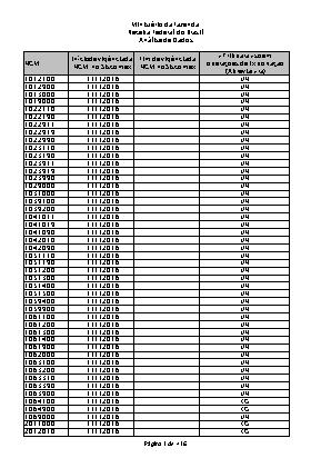 Segue abaixo, a listagem dos NCMs que entrará em vigor com início de vigência em e também os NCMs com o fim de vigência em
