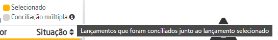 Ao selecionar um lançamento que tenha sido conciliado em conjunto, será exibida uma legenda em cinza indicando todos os outros lançamentos da mesma conciliação.