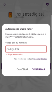 Fluxo para o login com Duplo Fator - 2FA no Linx Setadigital PDV MOBILE