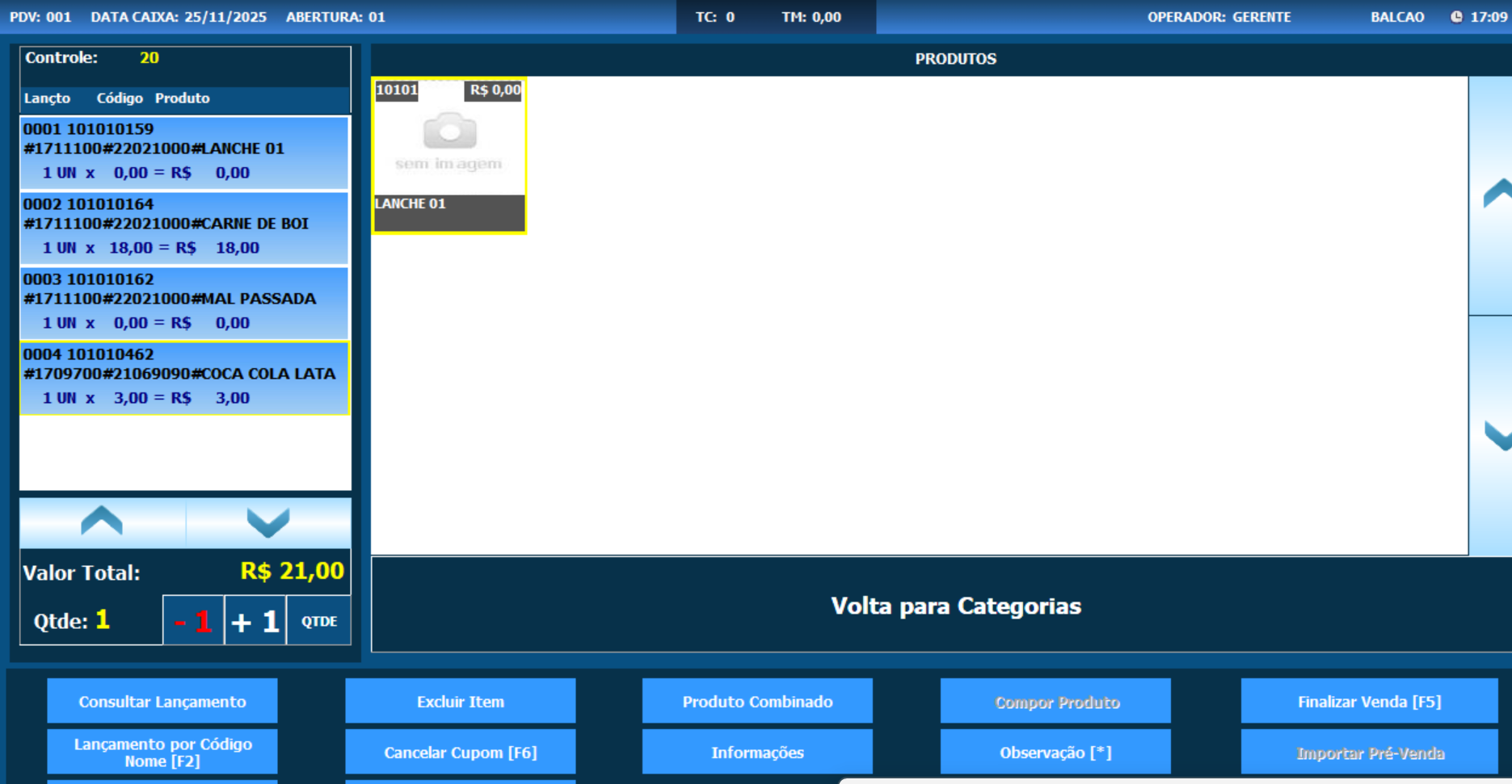 Após isso, basta gerar uma nova atualização para a loja pelo menu “Operacional>Atualização de Dados para o PDV”.