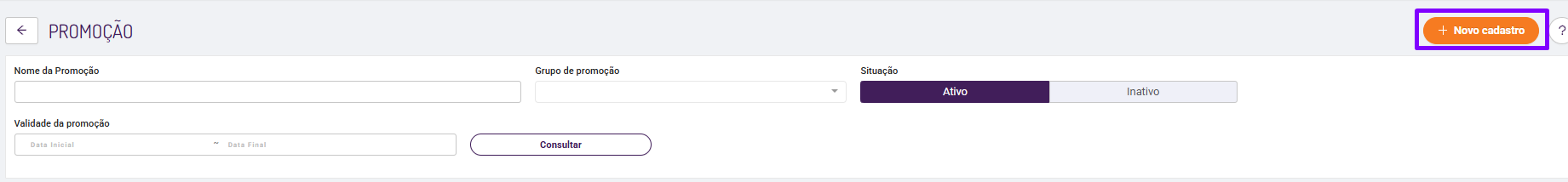 Será solicitado o Nome da Promoção e o Grupo, que caso não exista poderá ser adicionado diretamente clicando no botão (+).