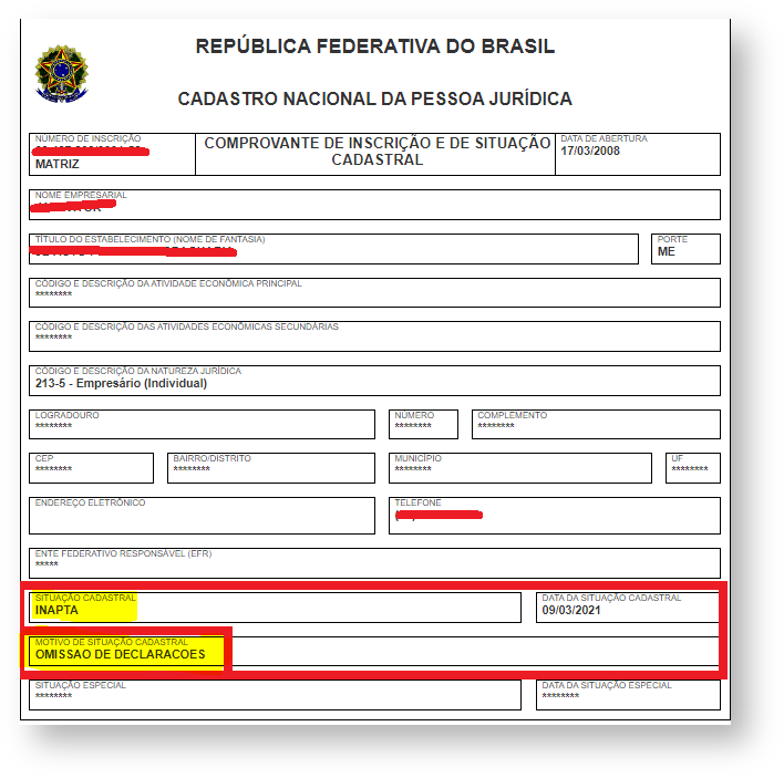 302: Uso Denegado: Irregularidade fiscal do destinatário