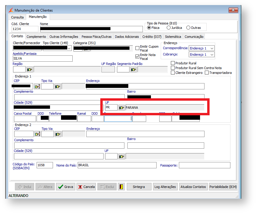 Selecionar a UF de acordo com o cadastro do cliente, nessa situação foi "Paraná"
