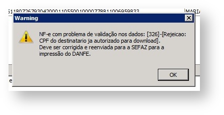 326 Rejeição: CPF do destinatário já autorizado para download.