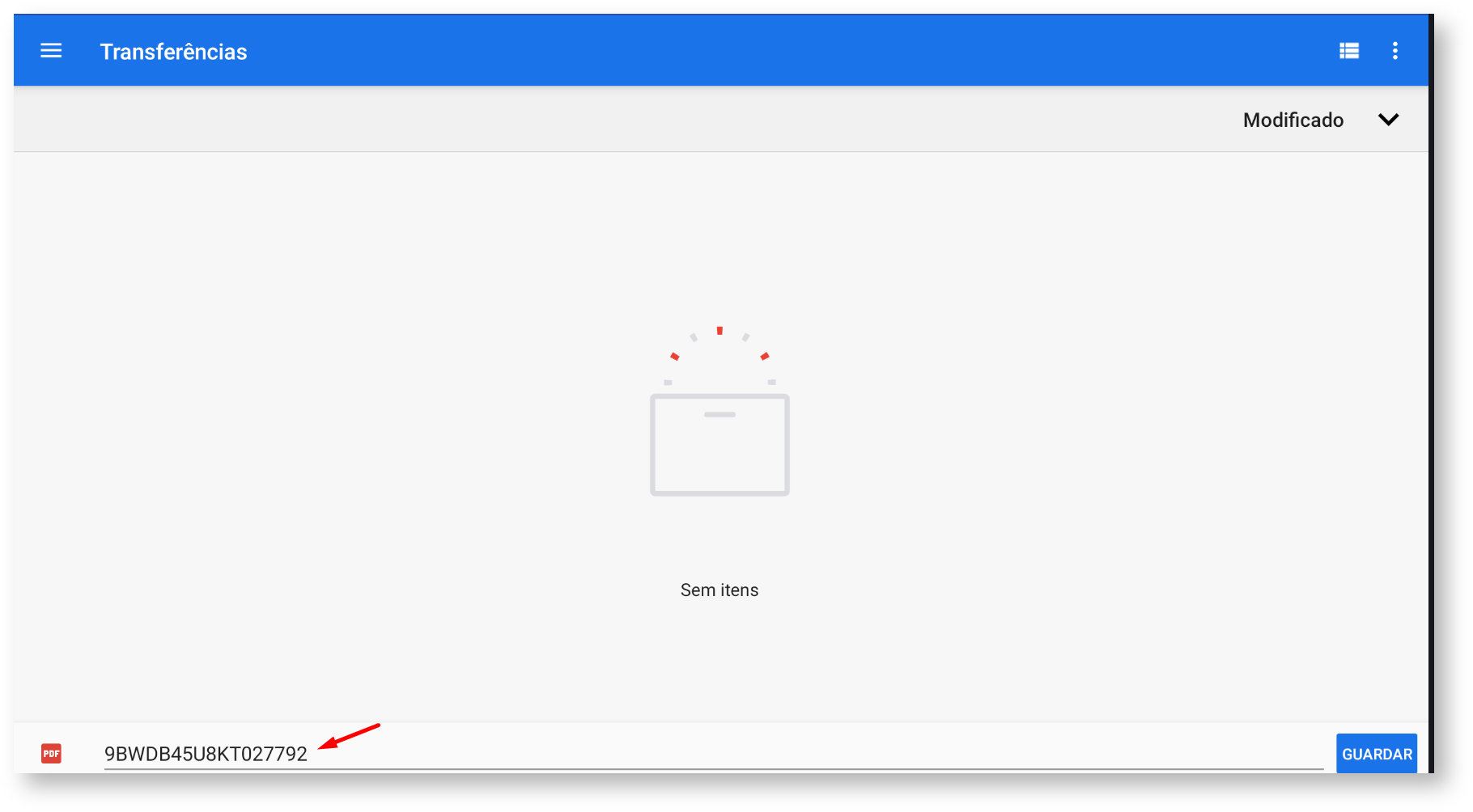 O arquivo .PDF será gerado com o número do chassi: