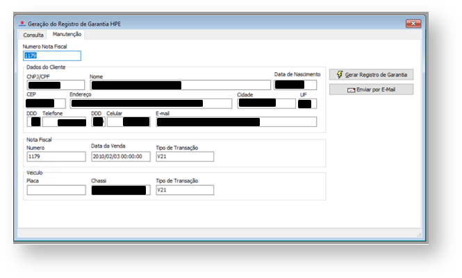 Consiste na geração do Registro de Garantia no processo de entrega de veículos novos.