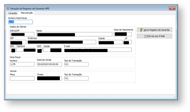 Clicar no botão "Gerar Registro Garantia"