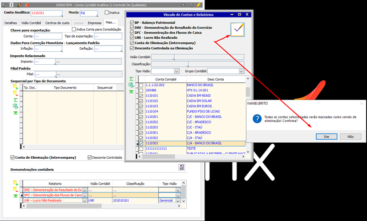 - Conta contábil vinculado a Lista de Contas e a aba Classificação & Contas