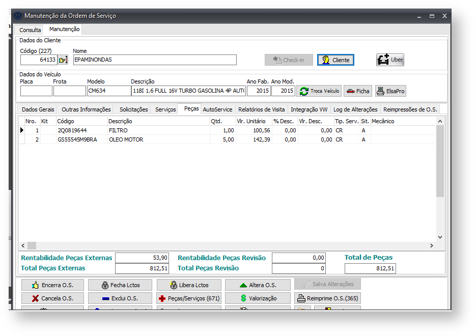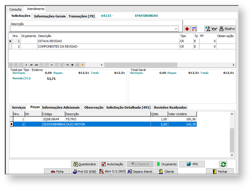 3) Após clique com o botão direito e selecione Abrir Atendimento, no menu de atendimento inclua todas as informações sobre peças e serviços que serão necessários e realize a abertura da ordem de serviço.