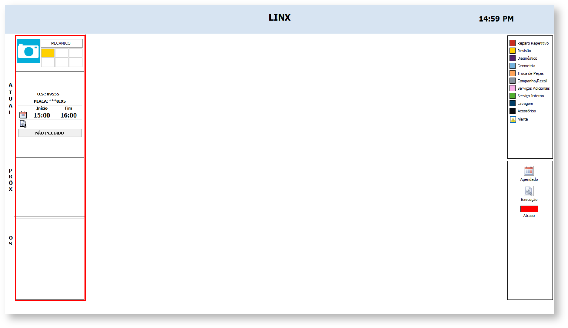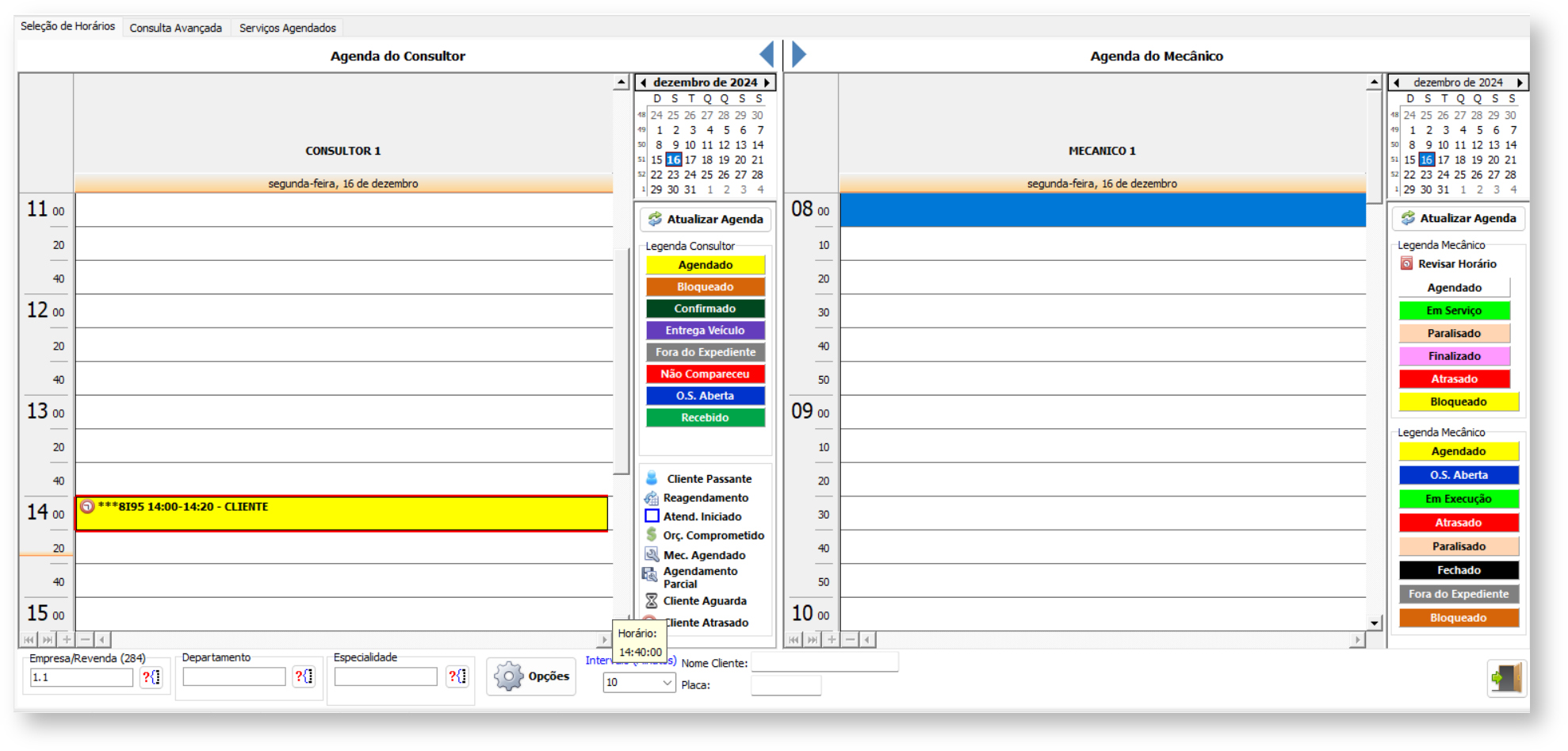 5) Ao exibir a "Agenda dos Mecânicos" no Painel de Monitoramento, será exibido a programação do mecânico conforme a agenda da oficina.