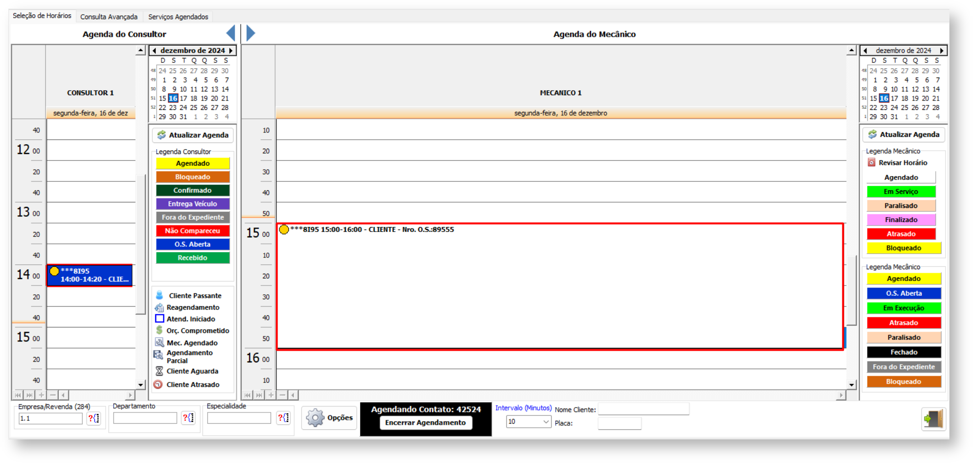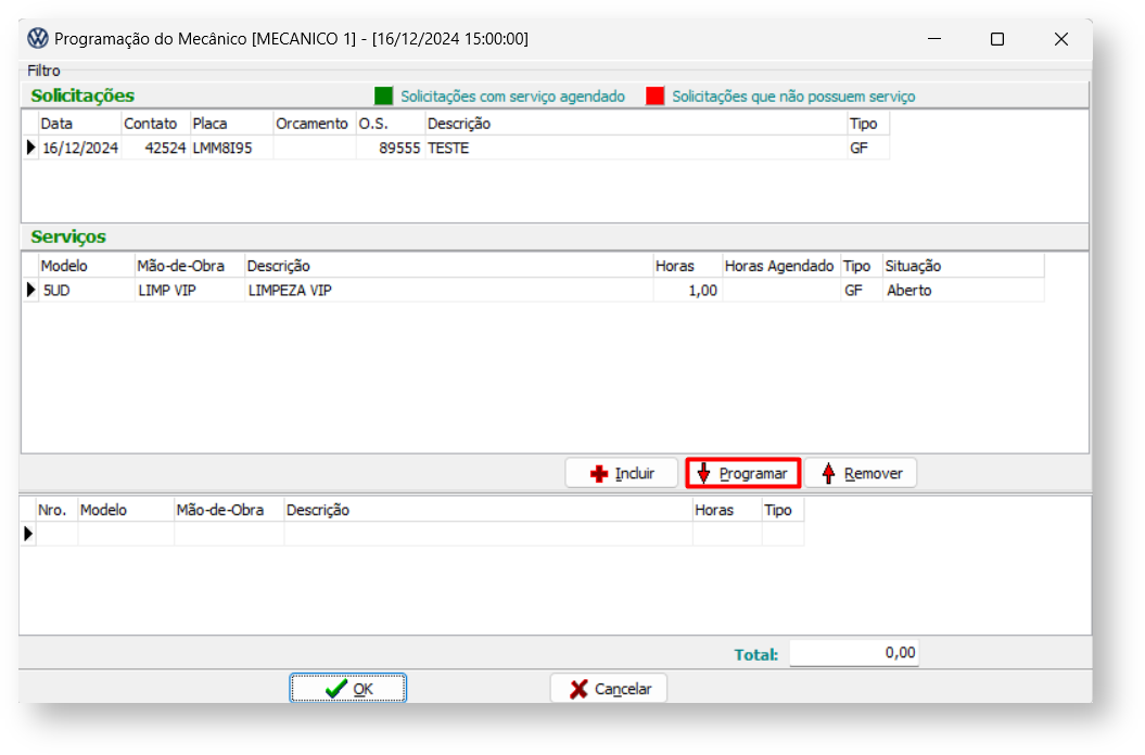 4) Após a abertura da ordem de serviço, ao voltar na agenda da oficina, realizar o duplo click na agenda do mecânico e programar o serviço.