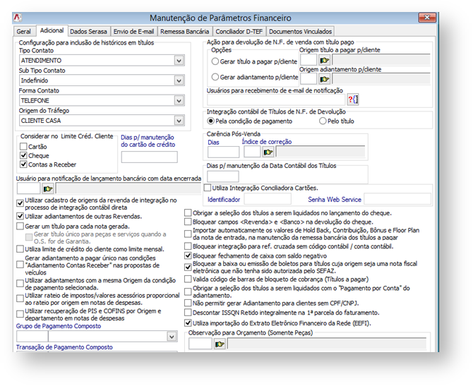 Figura 1 – Tela Parâmetros Financeiro > Adicional