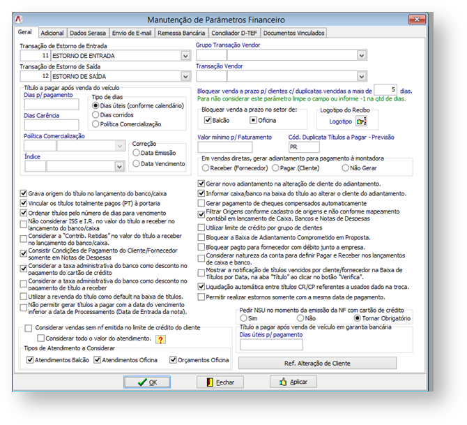 - Financeiro > Parâmetros