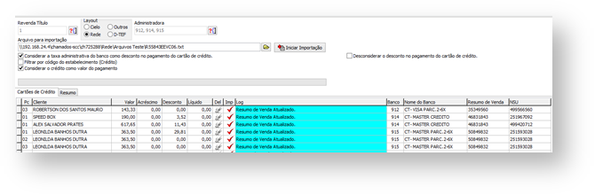 Os Títulos cartões de crédito encontrados serão atualizados, neste momento o Resumo de Venda já está atualizado dentro do título do cartão de crédito, e agora esses títulos estão liberados para realizar a importação do arquivo EEFI na data do vencimento dos títulos.